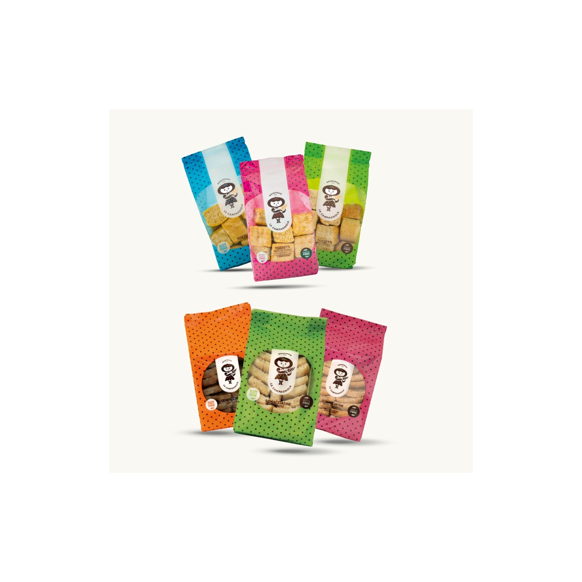Abbiamo creato un mix equilibrato con 6 confezioni di Tozzetti e 6 di Schiacciatine, per portare a casa il meglio dei prodotti da forno La Campagnola. Dalla croccantezza rustica dei Tozzetti alla friabilità delle Schiacciatine, ogni morso racconta la perfetta sintesi di due anime della nostra arte bianca, tra rusticità e delicatezza.